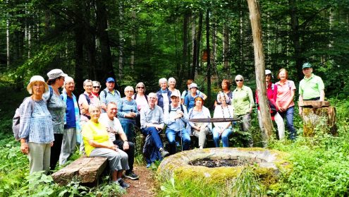 Der Albverein Hall erkundete mit Gästen der Ortsgruppe Kirchberg die waldreiche Umgebung von Geifertshofen. Auf der zweieinhalbstündigen Wanderung machte die Gruppe Pause am Teuerzer See und labte sich an der Heiligenquelle, bevor es zur Schlusseinkehr nach Bühlertann ging.