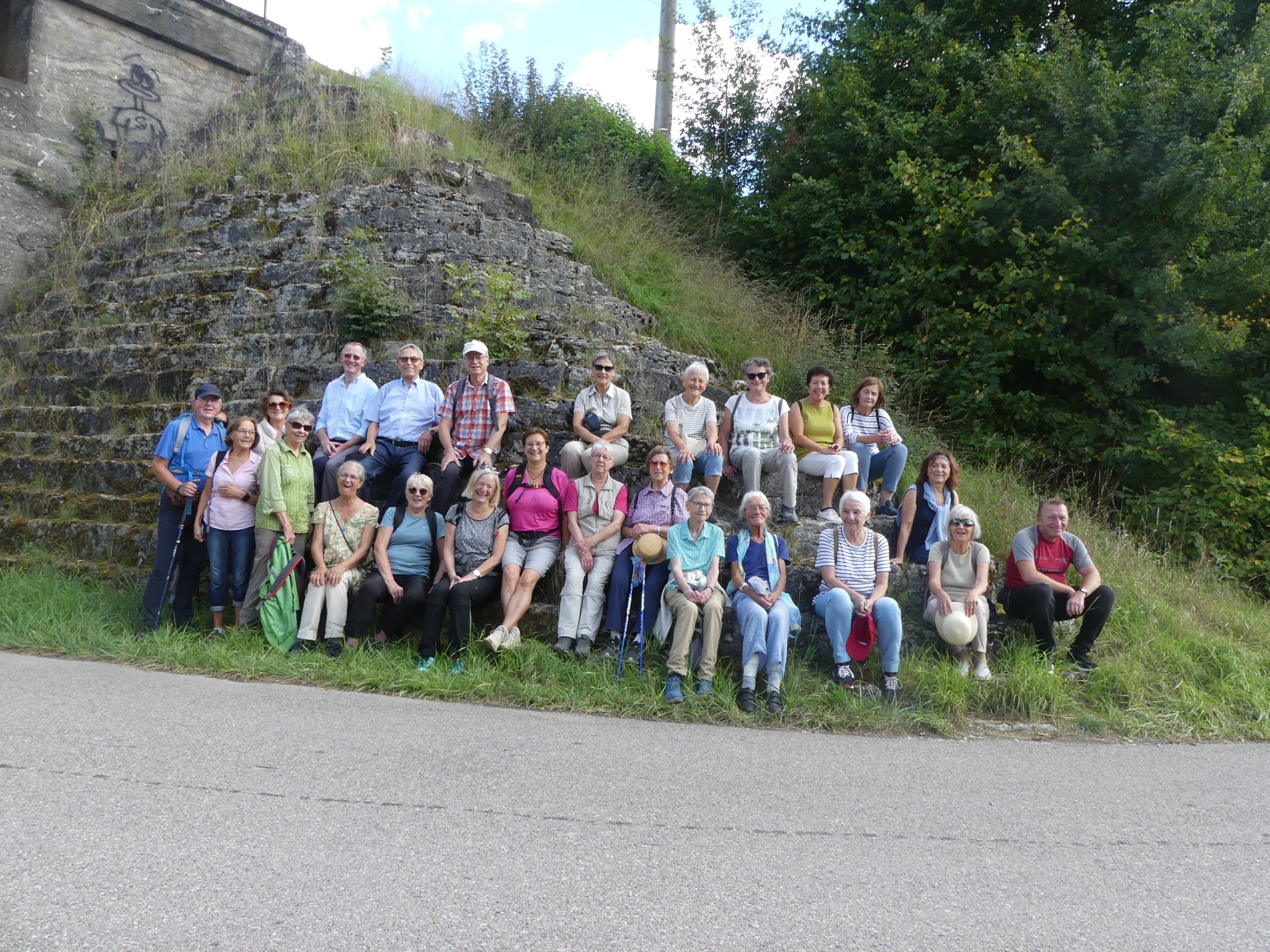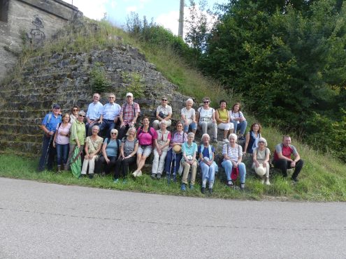 Bei bestem sonnigen Wanderwetter war der Albverein Hall mit zahlreichen Mitgliedern und Gästen südlich von Hirschfelden den Adelbach entlang unterwegs. Die leicht hügelige Landschaft mit den einzelnen Hofstellen und den weidenden Kühen erinnerte viele in der Wandergruppe ans Allgäu.