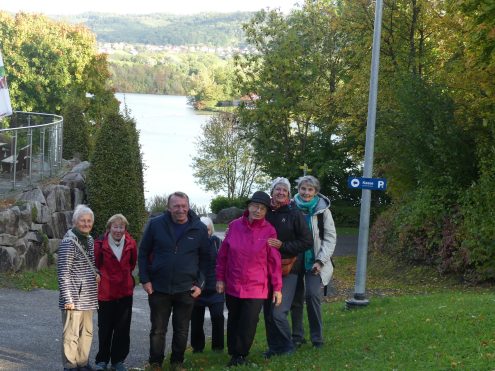 Bei einem Mix aus Wind, Regen und Sonne genossen neun „Unerschrockene“  den Halbtagesausflug des Haller Albvereins zur Burgruine Löwenstein und an den Breitenauer See.