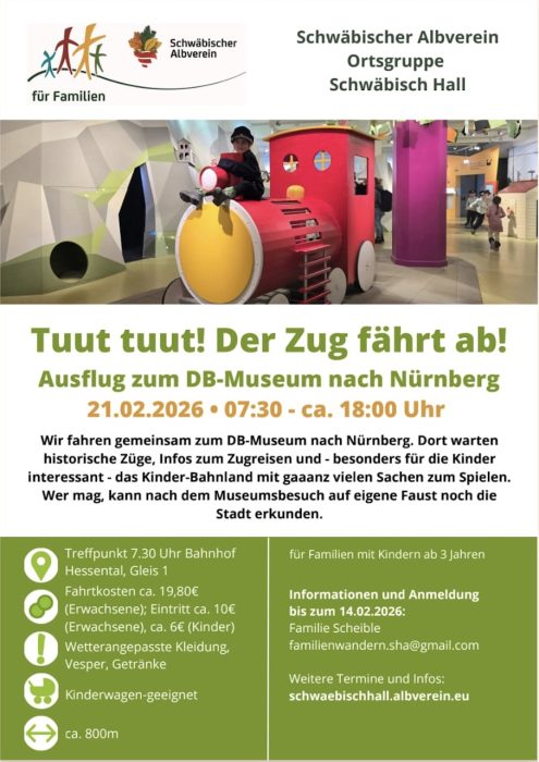 Wir besuchen das DB-Museum (Deutsche Bahn) in Nürnberg. Die Familiengruppe freut sich, wenn auch andere Mitglieder teilnehmen.