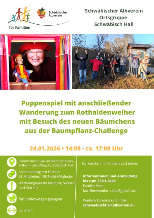 Anmeldung bis 22.01.per E-Mail bei  familienwandern.sha@gmail.com