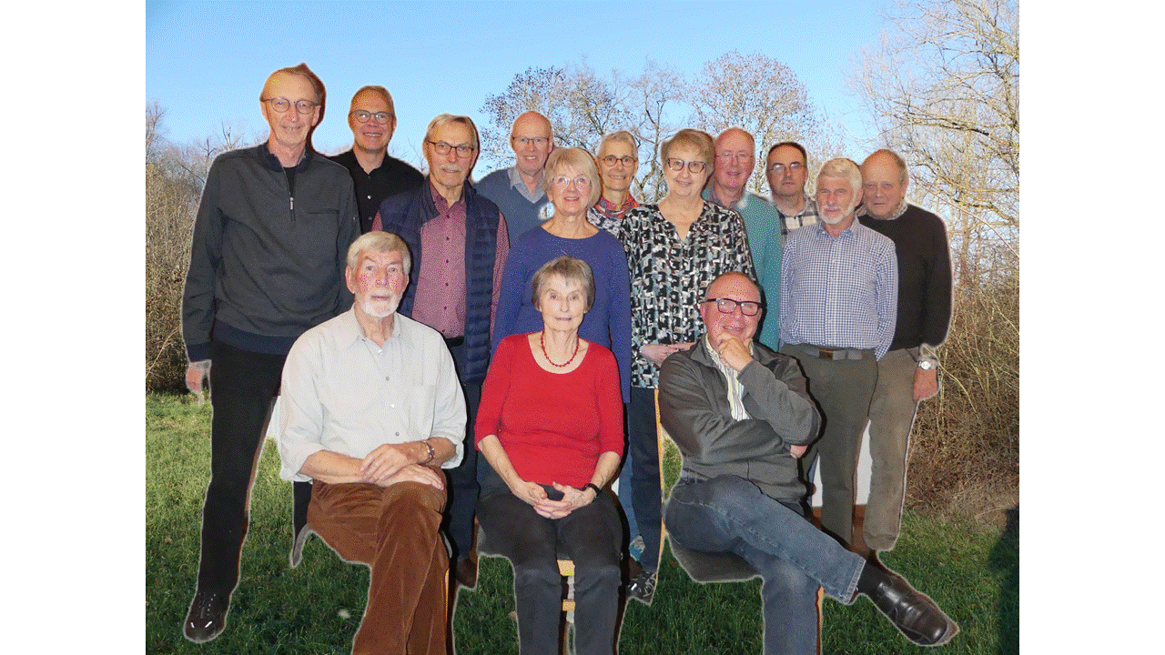 stehend v.l.n.r.: Manfred Prinz (Rechner), Joachim Kaltmaier (Internet), Siegfried Rebstock (Beisitzer), Manfred Stege (Wanderwart), Heike Sengstake (Mitglied im Vorstandsteam), Rose Frahm-Prinz (Schriftführerin), Regina Schoch (Beisitzerin), Heinz Schüle (Sprecher des Vorstandsteams), Steffen Dathe (Wegwart), Udo Brumme (Wanderwart bis März 2025), Reinhard Hufendiek (Beisitzer)